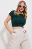Women's Blouse New Season Fashion Gray Crew Neck Front Stitched Crop Sandy Blouse