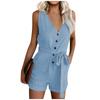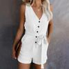 Womens Casual V Neck Bow Pocket Sleeveless Shorts Wide Shorts Jumpsuits Rompers