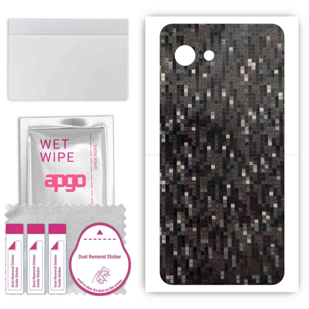 apgo Protective Skin Sticker for the Back Compatible with Sharp Aquos R2 Compact, Wrap Film, Foil, Vinyl - Pattern Carbon Black Pixel
