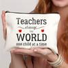 Simple Teacher Change The World Pattern Print Makeup Bag, Women Handhold Bag Travel Cosmetics Storage Pouch Bag Toiletry Bag, Gift For Teacher — buy online with free worldwide shipping!
