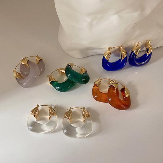 1 Pair Resin Earrings All-match Decorative Glossy Retro Stud Hook Hoop — buy online with free worldwide shipping!