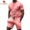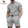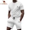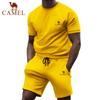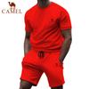 Camel Short Sleeved Men's Summer Casual Fashion Solid Color Two-piece Sports Suit Trendy Quarter Pants — buy online with free worldwide shipping!