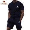 Camel Short Sleeved Men's Summer Casual Fashion Solid Color Two-piece Sports Suit Trendy Quarter Pants