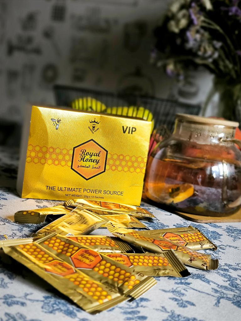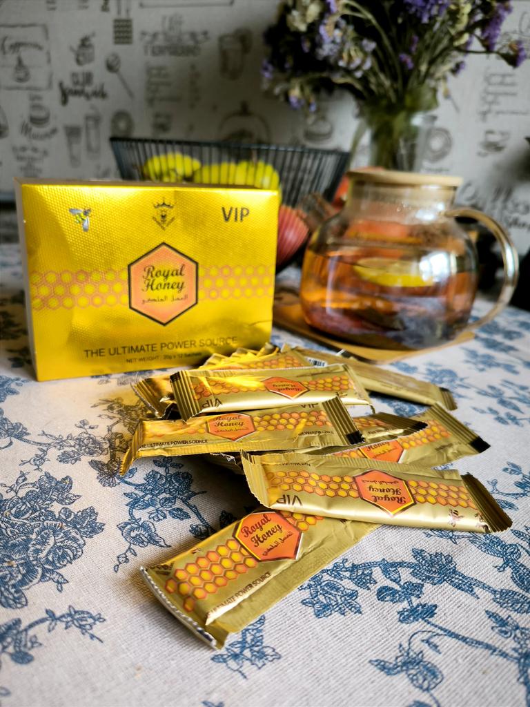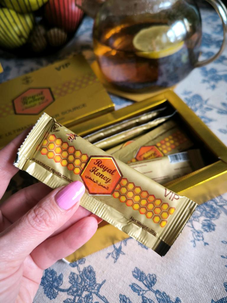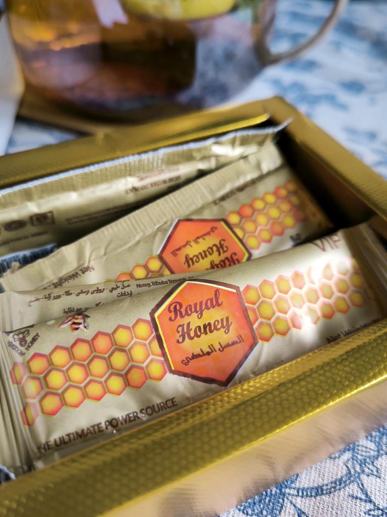Royal Honey Gold Honey is a bee product sold in 12 packs of 20 grams. This product is made up of natural ingredients such as honey, pollen, royal jelly, bee bread, and herbal blends.. Royal Honey Gold Honey is known for its energizing properties and is used as a performance enhancer.