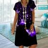 Summer Fashion V-neck Dress Ladies Short Sleeve Shuibo Butterfly Printed Dress Loose Casual Dress for Women