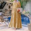 Womens Layered Floral Printed Full Sleeve Muslim Casual Long Dresses
