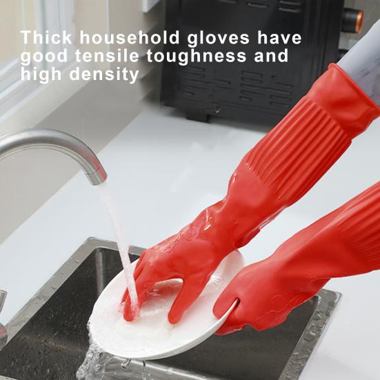 Crafted from premium natural rubber, these reusable kitchen gloves are gentle on the skin. Store them in a cool, dry place to prolong their lifespan. With a full hand design extending to the arm, these 15-inch gloves offer complete protection during household chores, keeping your hands and arm dry and clean.