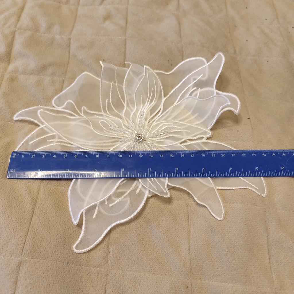 Multi-Layer White Black Lace Beads Organza Flower Sew On Patch For Wedding Evening Dress Decoration Applique