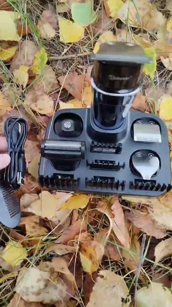 Hair clipper 5 in 1 This is the best machine we've had. The machine arrived fully charged to 100 After testing and using, the charge decreased by only 3. Therefore, one charge will be enough for a long time. The machine is suitable not only for haircuts, but also for shaving beards and nose hair. The kit also includes a comb, a cleaning brush and a charging cable. And what really pleased me was the stand for the razor and all the chargers included in the kit. Thanks to the stand, it is incredibly convenient to store everything. To change the nozzle, you need to pull it up, and then insert another one. The machine is resistant to water 💦 The seller packed very reliably and during delivery even the box was not damaged. This is a great product at a great price.