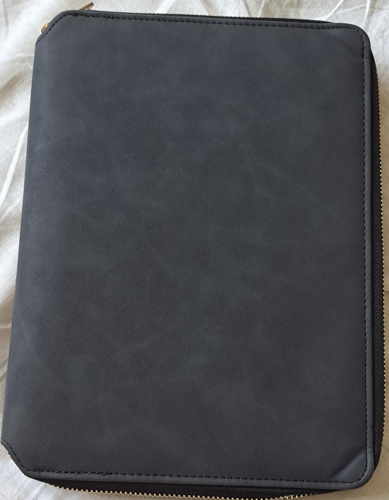 Leather cover with zipper, notebook needs to be bought separately, good convenient folder