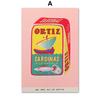 Japanese Pink Cherry Blossom Ink Canned Sardine Tomato Wall Art Painting Nordic Poster Packaged Print Pictures Living Room Decor