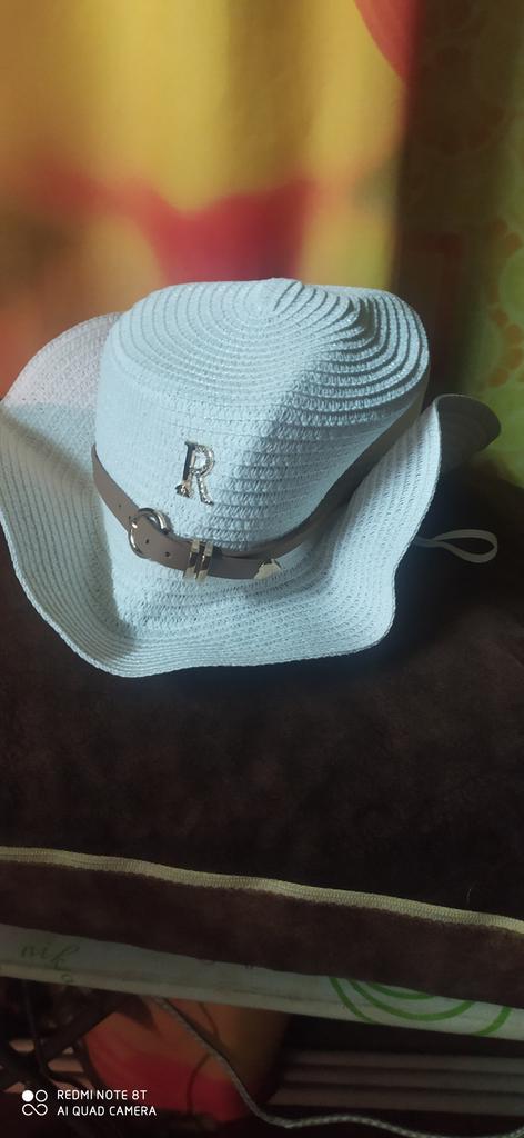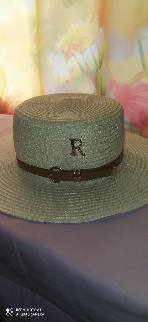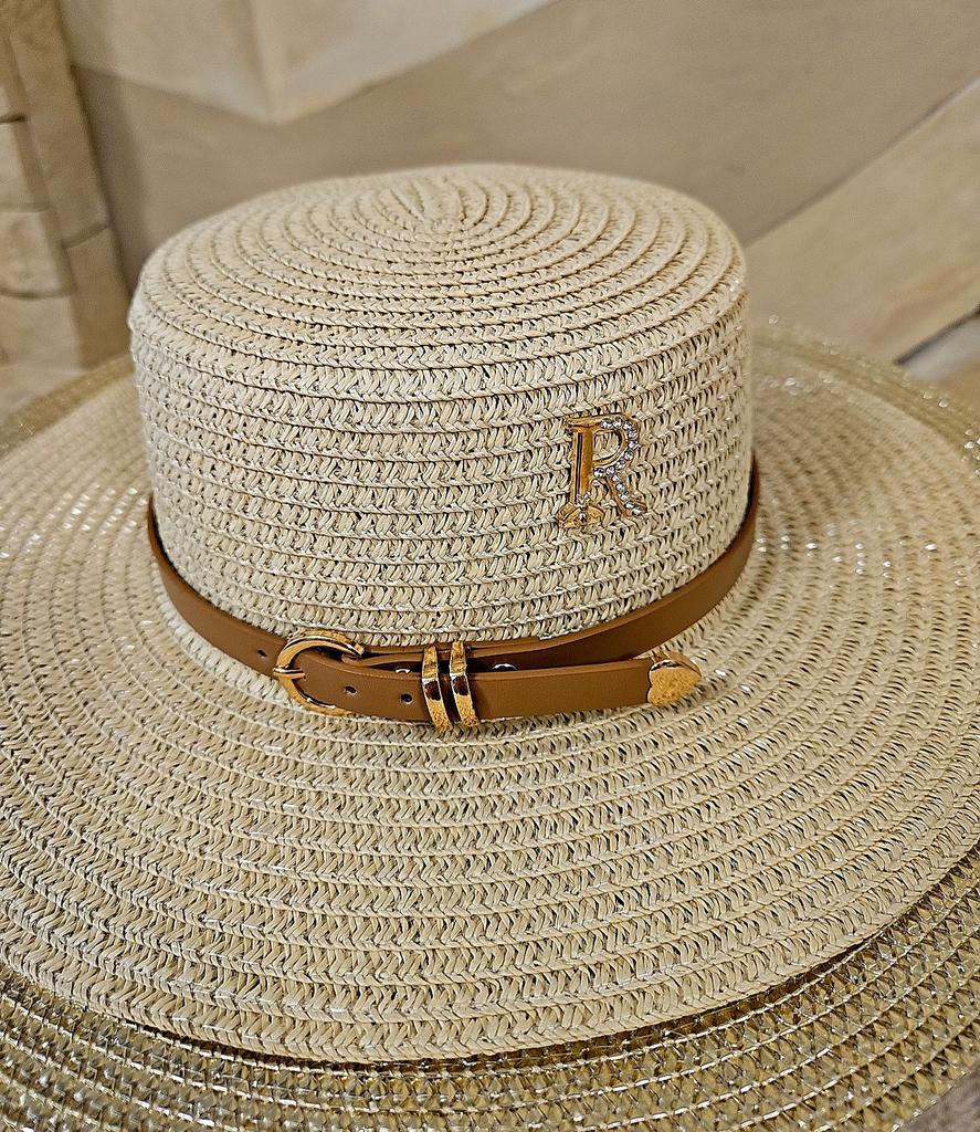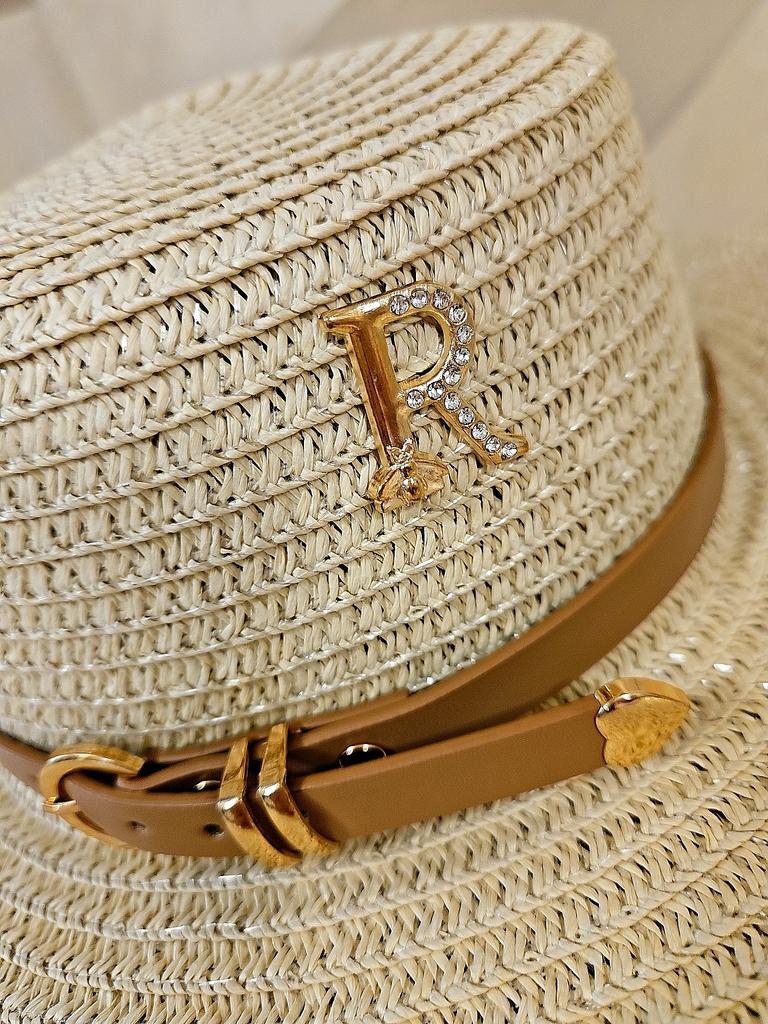 Women Sumemr Belt Letter Decor Rhinestone Flat Top Round Brim Retro English Style Solid Color Lightweight Vacation Beach Cap — buy online with free worldwide shipping!