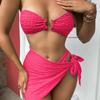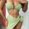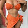 Solid Three-piece Bikinis Set Push Up Swimsuit Woman Ribbed Bathing Suits Sexy Low Waist High Cut Swimwear Women Bikini