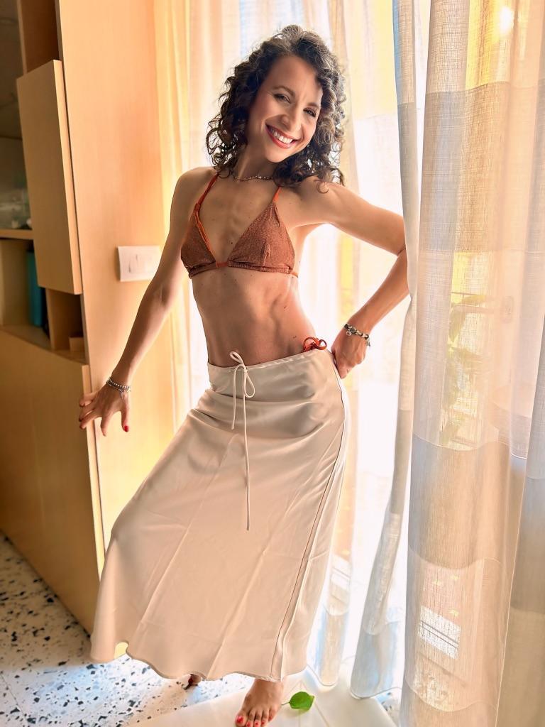 😍long satin skirt This is a very high quality skirt. I was so worried because I thought the skirt might look like underwear but instead....this skirt is AMAZING!!!! because the product is excellent and worth it!!!!! 🌟🌟🌟HIGH QUALITY The fabric is soft and pleasant on the skin. Perfect in any season but in summer it will be absolutely magnificent 🌟🌟🌟COLORS I chose the ivory color because it can be combined with everything 🌟🌟🌟SHIPPING Fast delivery in 15 days 🌟🌟🌟 SIZE The size chart is correct. I got a S (my measurements are 69 cm for the waist and 93 cm for the hips) and I am satisfied. I am 170cm tall. My measurements are 75-69-93 cm. The fabric is not elastic and does not give 🧡❤️🧡❤️ CONCLUSION I am very satisfied with my purchase. I recommend this skirt if you are looking for QUALITY and an excellent fit at a super price!!!!! 💯💯💯💯