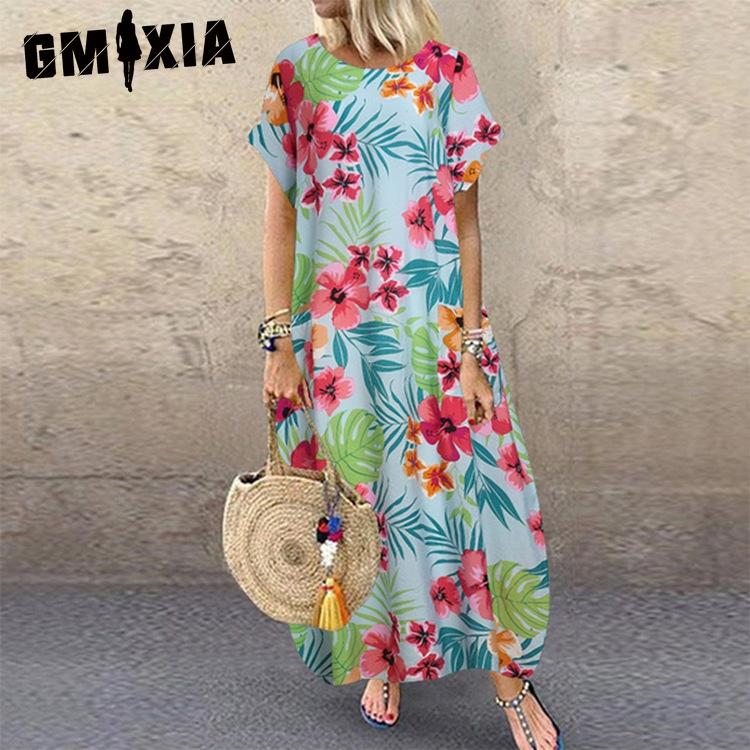 GMXIA Women's Fashion Summer Spring Floral Print Short Sleeve O-Neck Casual Dresses — buy online with free worldwide shipping!