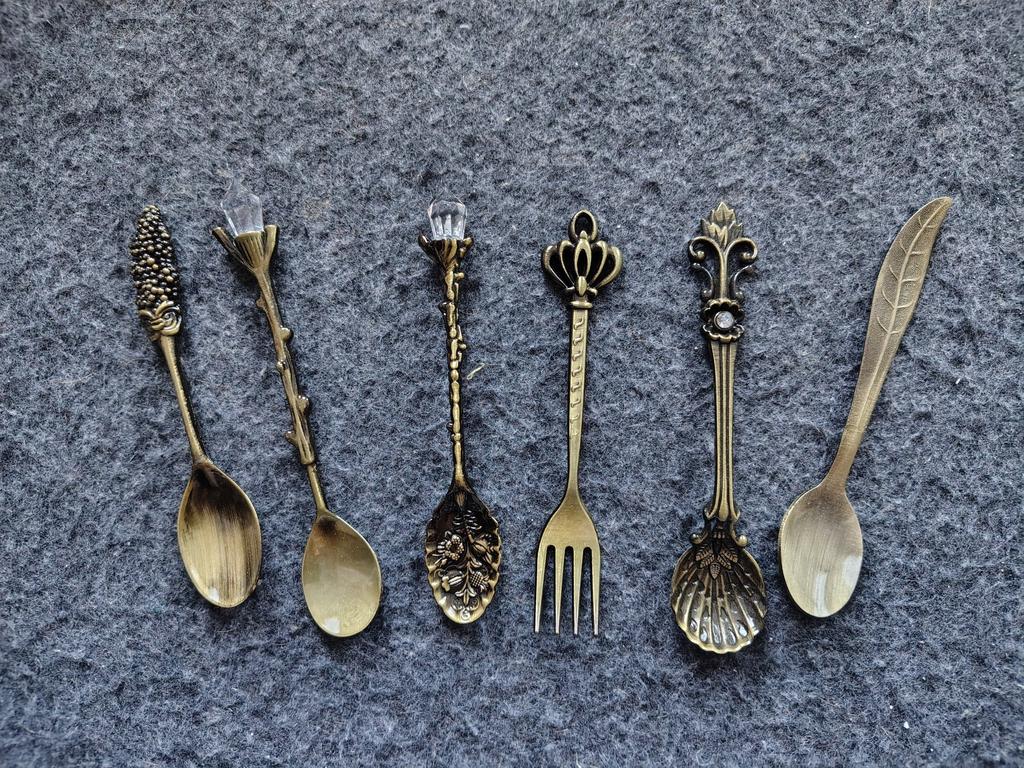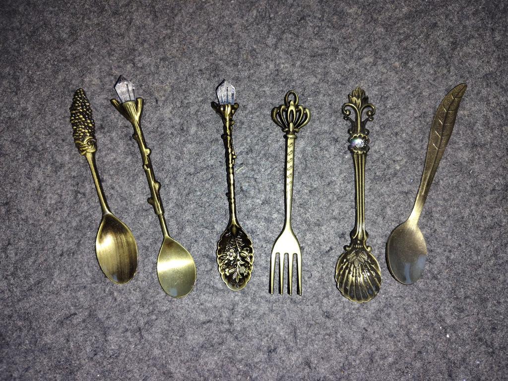 Vintage Spoon Fork 6-piece Cutlery Set Mini Royal Style Metallic Gold Carved Fruit Teaspoon Coffee Snack Dessert Fork Kitchen Tools — buy online with free worldwide shipping!