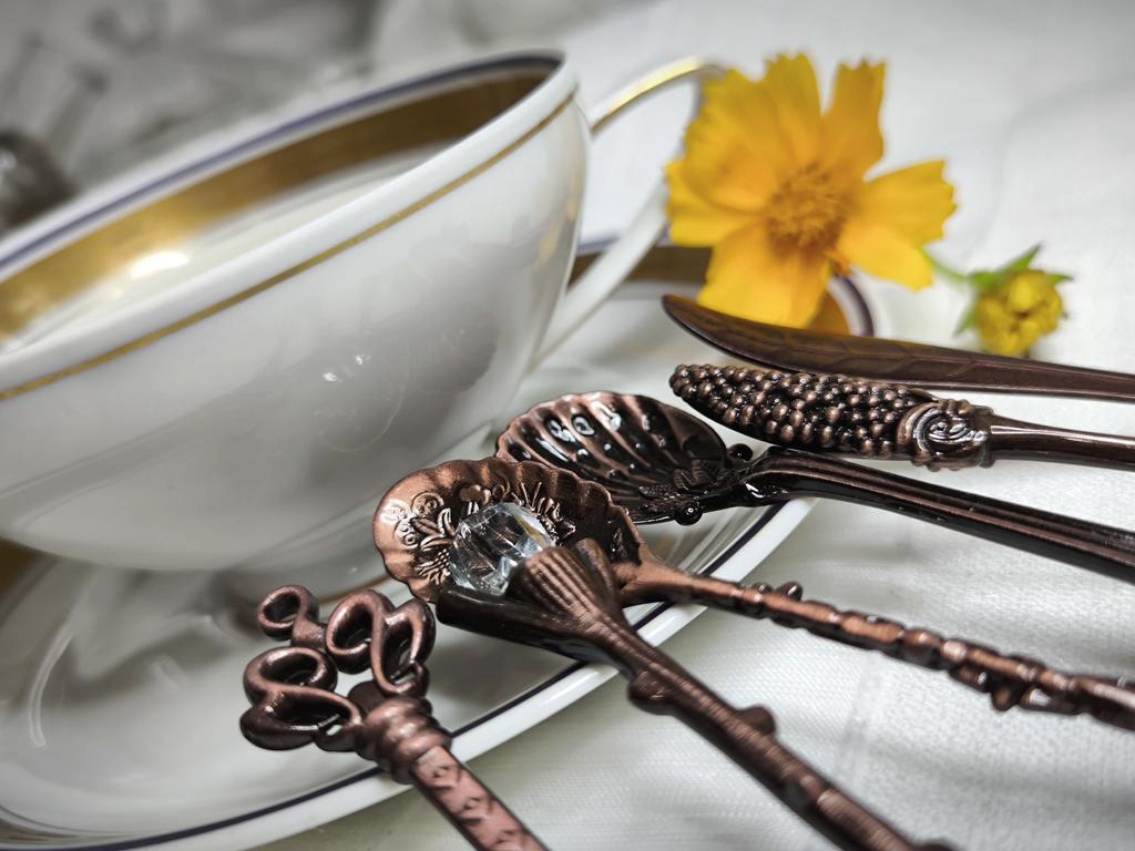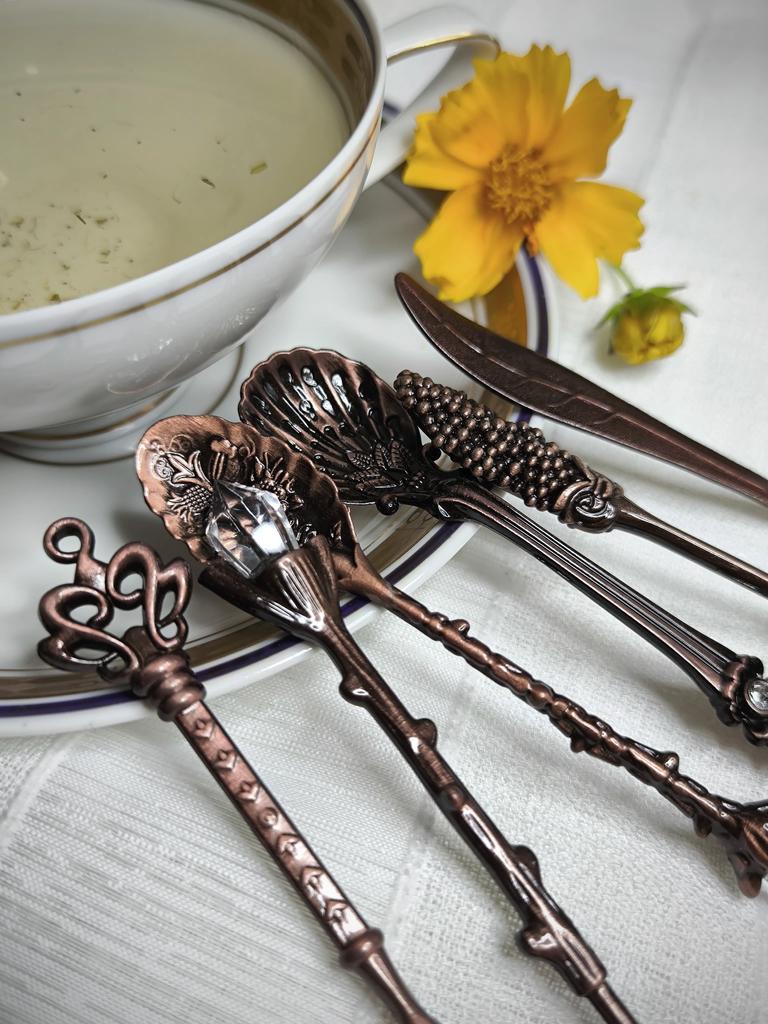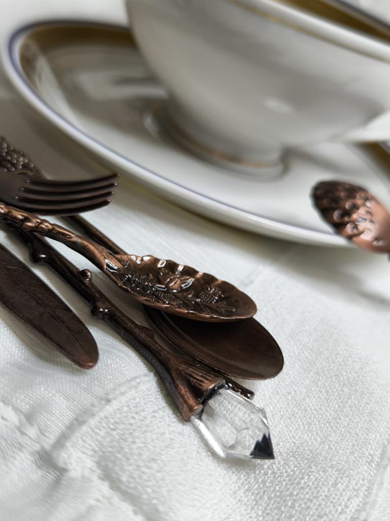 Vintage Spoon Fork 6-piece Cutlery Set Mini Royal Style Metallic Gold Carved Fruit Teaspoon Coffee Snack Dessert Fork Kitchen Tools