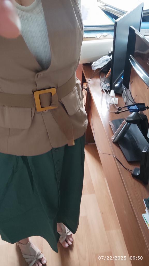 Cotton Midi Skirt With Belt Women Single -Breasted Large Pockets High Waist A -Line Skirt Autumn Summer Korean Fashion Long Skirt — buy online with free worldwide shipping!