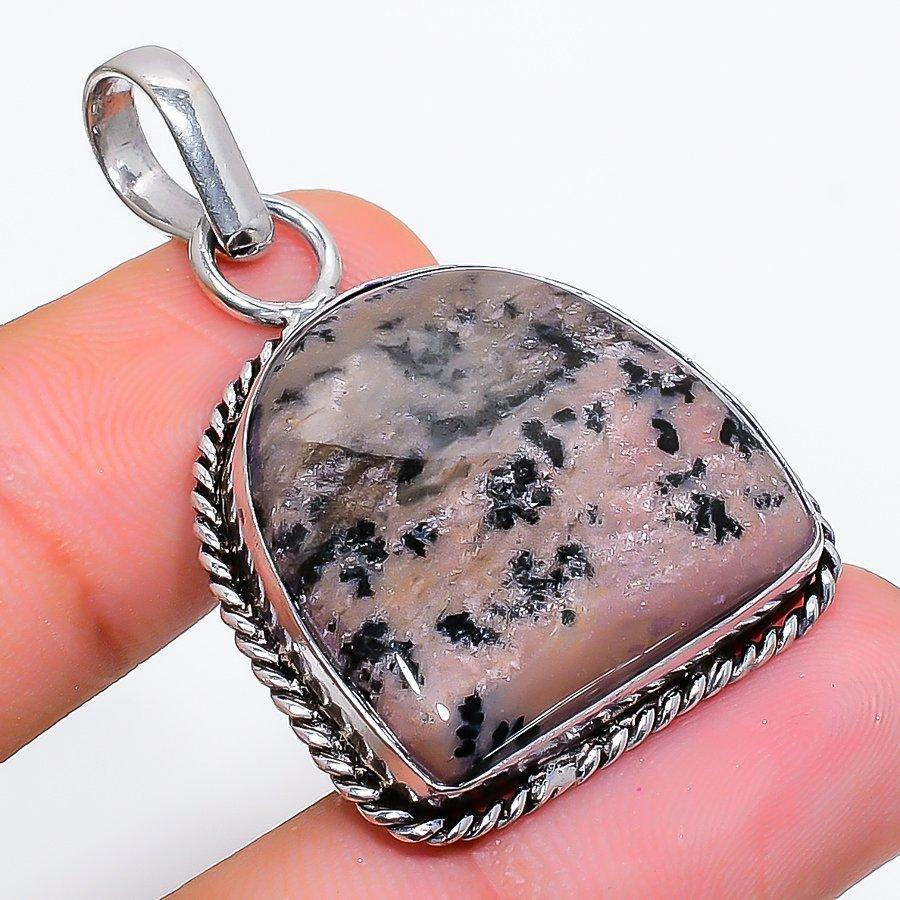 Natural Honey Dendritic Gemstone 925 Sterling Silver Gift Pendant 1.50"