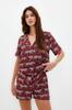 Women's Fashion New Pajama Set Emerald Green Patterned Viscose Shirt-Shorts Woven Pajama Set