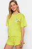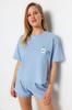 Women's Fashion New Pajama Set Gray Cotton Printed T-shirt-Shorts Knitted Pajama Set