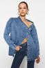 Women's Fashion New Shirt Black Asymmetrical Collar Detailed Denim Shirt