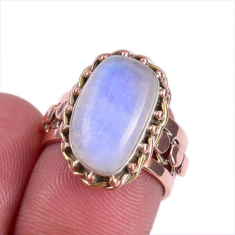 Natural Rainbow Moonstone Gemstone Two Tone 925 Sterling Silver Ring Size 6 Z8v90 — buy online with free worldwide shipping!