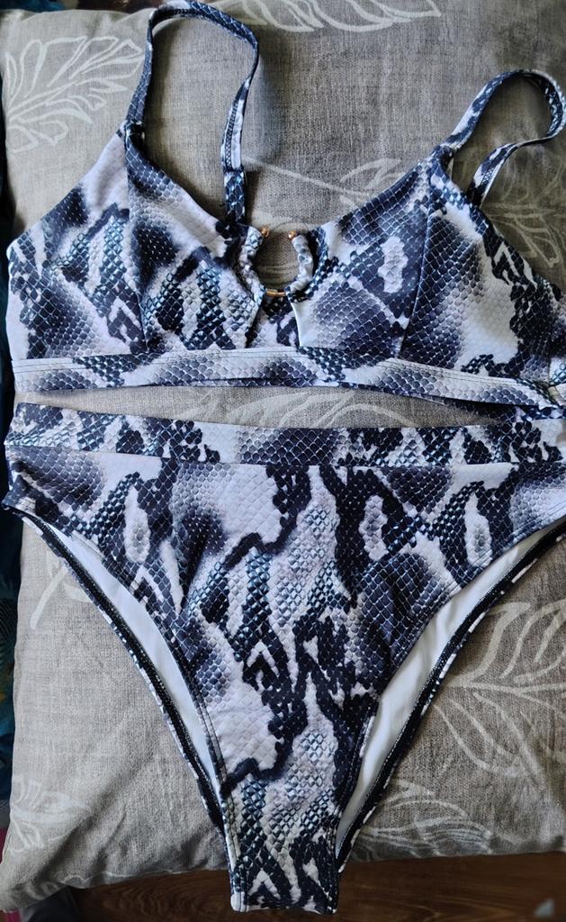 Leopard Snake Print Sexy Cutout Metal Ring High Waist Bikini Two-Piece Swimsuit — buy online with free worldwide shipping!