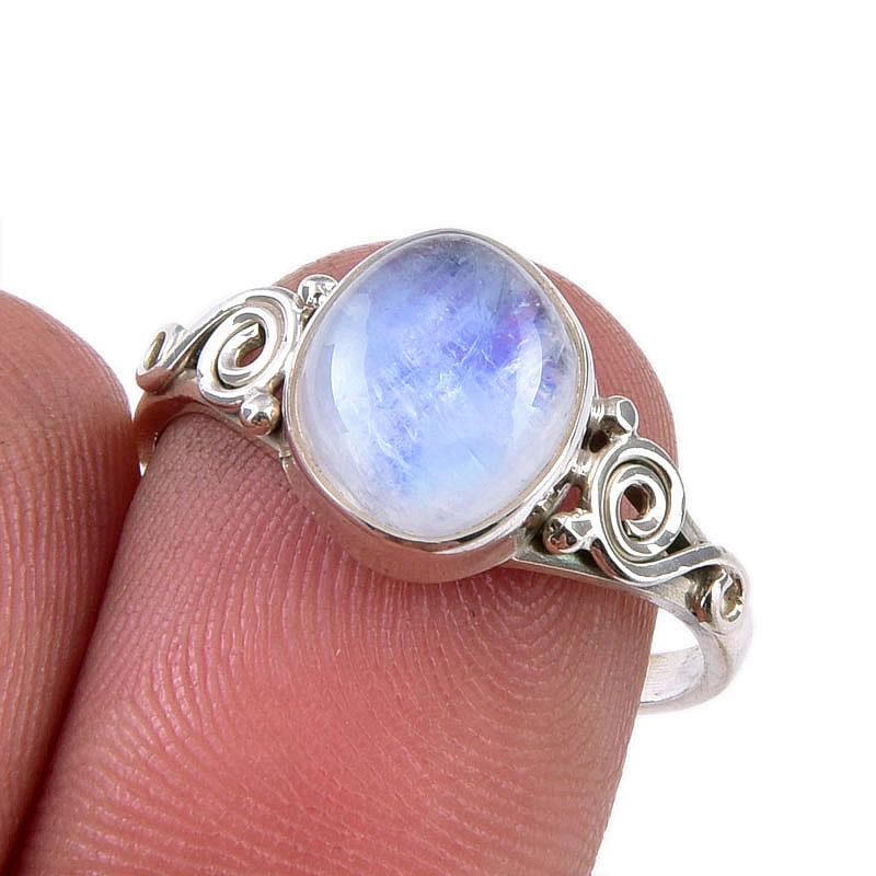 Natural Rainbow Moonstone Gemstone 925 Solid Sterling Silver Ring Size 7.5 P9t47 — buy online with free worldwide shipping!