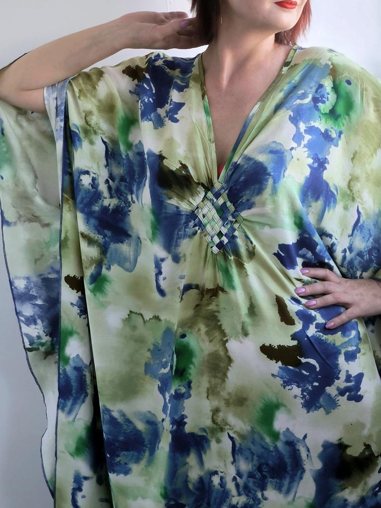 EDOLYNSA Plus Size Kaftan Bohemian Printed Summer Long Beach Dress Women Homewear Outfit Swim Suit Cover Up Loose Caftan — buy online with free worldwide shipping!