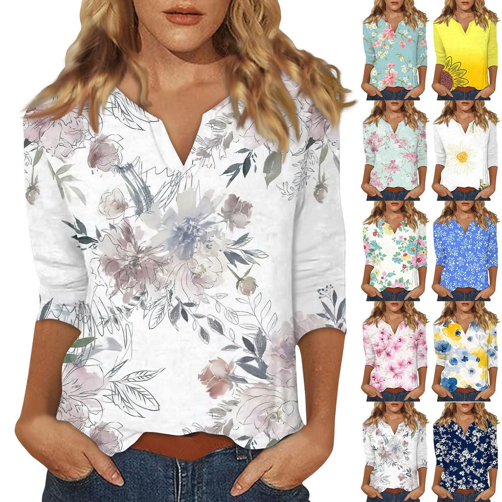 Women's Stand Collar 3/4 Sleeve Printed Top T-shirt — buy online with free worldwide shipping!