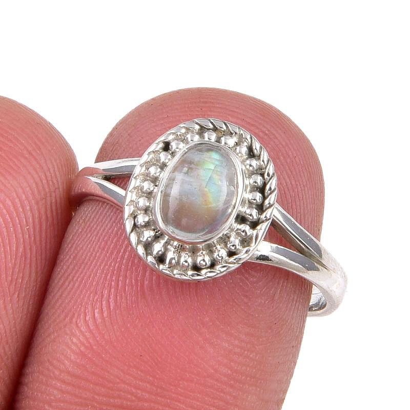 Natural Rainbow Moonstone Gemstone Handmade 925 Sterling Silver Ring Size 7 U4e35