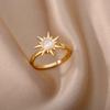 Women's Swivel Sun Opal Ring Stainless Steel Retro Charm Adjustable Open Rings Party Jewelry Best Friend Gift Feminine Costume Jewelry