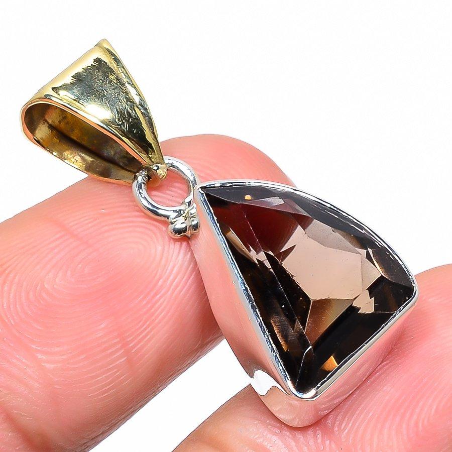 Natural Smoky Quartz Gemstone 925 Sterling Silver Two Tone Pendant 1.34 g4W47 — buy online with free worldwide shipping!