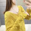 Hollow Knitted Sweater Women's Pullover Spring and Autumn V-neck Blouse Loose Outer Sweater Bottoming Shirt