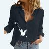 Women Fashion Lapel Neck Long Sleeve T-shirt Summer&fall Casual Printed Cotton Linen Top Female Loose Buttoned Blouses