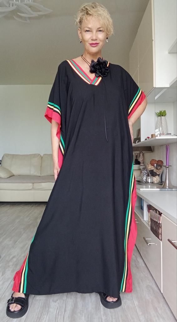 EDOLYNSA Cozy Classy Multicolor Print V-neck Women Loose Kaftan Bathing Suit Cover Up Lightweight Moo Moo Dress Beach Wear Q1615 — buy online with free worldwide shipping!