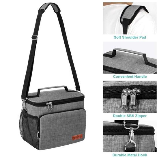 Durable Construction: Crafted from premium Oxford Cloth with reinforced metal SBS double zippers, this insulated lunch bag ensures tear resistance and maximum durability for long-lasting use in various settings.