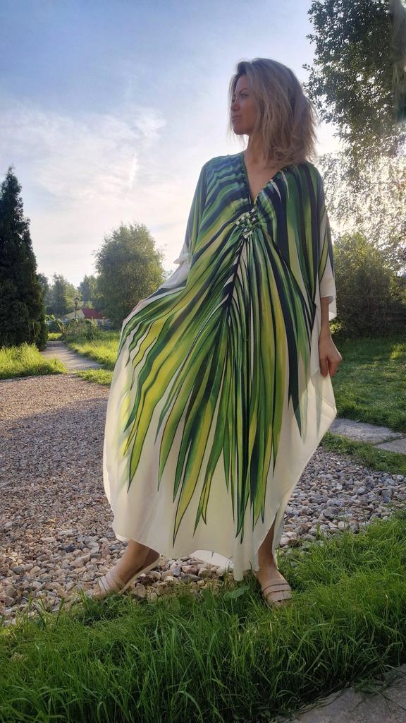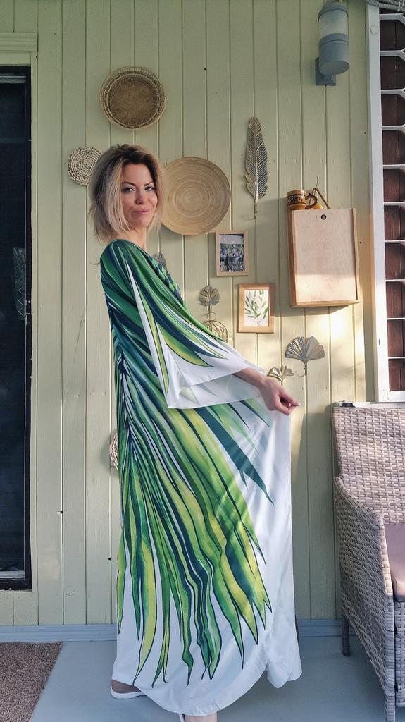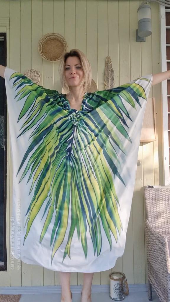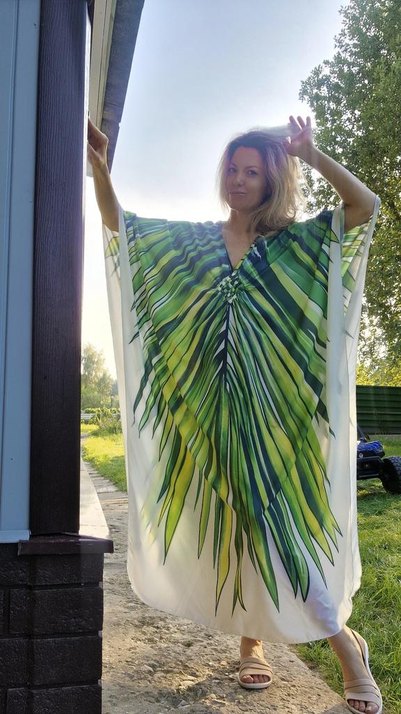 EDOLYNSA Oversize Women Kaftan Robe Outfit Bohemian Printed Vacation Chinese Knot V-neck House Bathing Suit Cover Up Q1588 — buy online with free worldwide shipping!