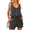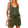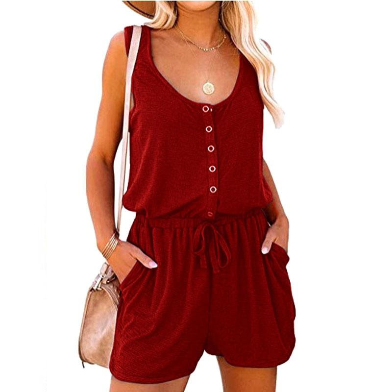 The Design Of This Shorts One Piece Jumpsuit:Solid Jumpsuit,Round/Scoop Neck, Short Romper, Adjustable Drawstring Waist, Two Side Pockets, High Elastic Waist, U Back, Tank Tops Romper, Short Pants Design, Wide Legs, Loose Fit, Stretchy Fabric, Casual, Lightweight.