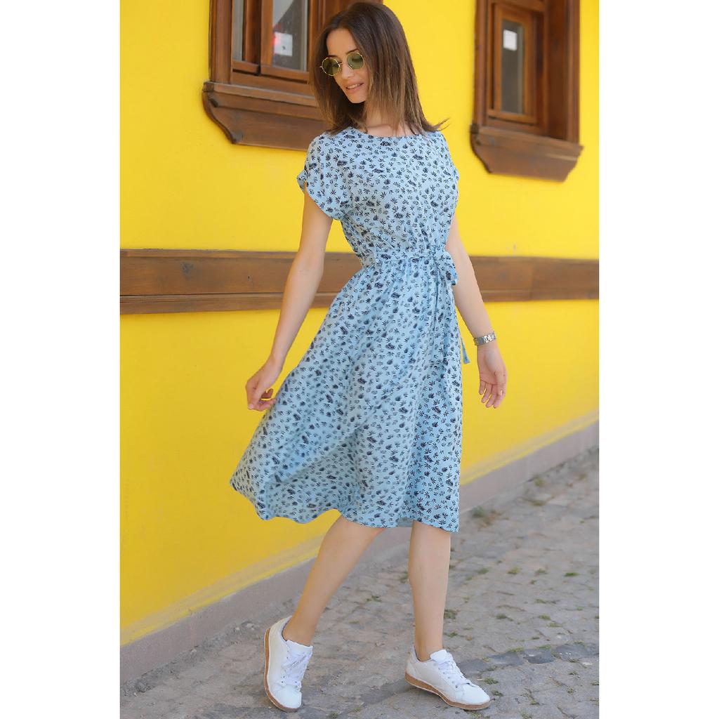Women's Baby Blue Patterned Elastic Waist Tie Dress Arm-18y001121 — buy products online with free worldwide shipping!