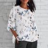 Women Summer Cotton Linen Tshirt Tops Printing Loose Fit Blouse 3/4 Sleeve Vintage Crewneck Plus Size Clothes — buy online with free worldwide shipping!