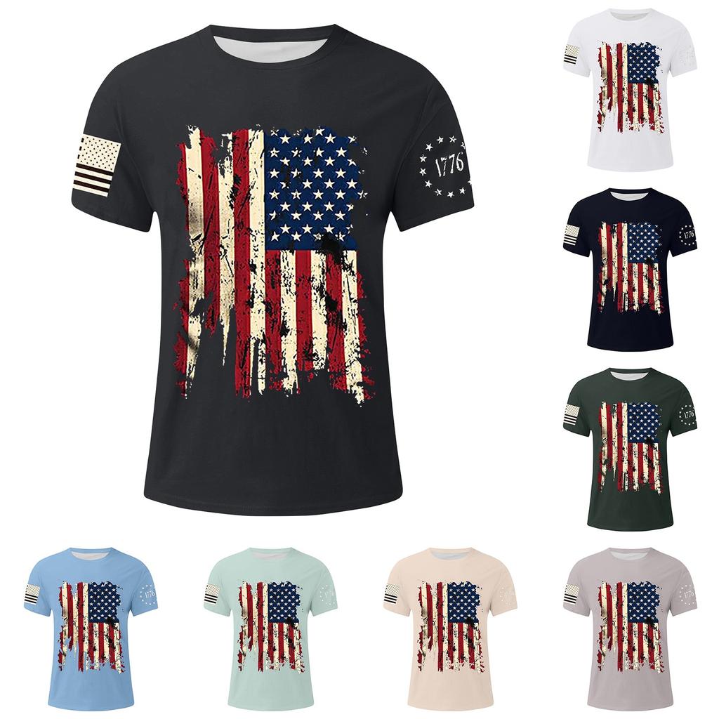 Men's Flag Printed T-Shirt Men's Loose Casual Short Sleeve Top