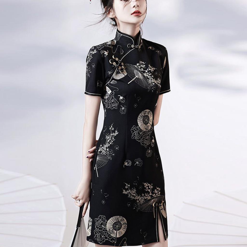 Women's Fashion Black Improved Temperament Small Casual Cheongsam
