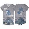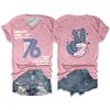 Women'S T-Shirt Casual Loose Printed V-Neck Pullover Short Sleeved Top