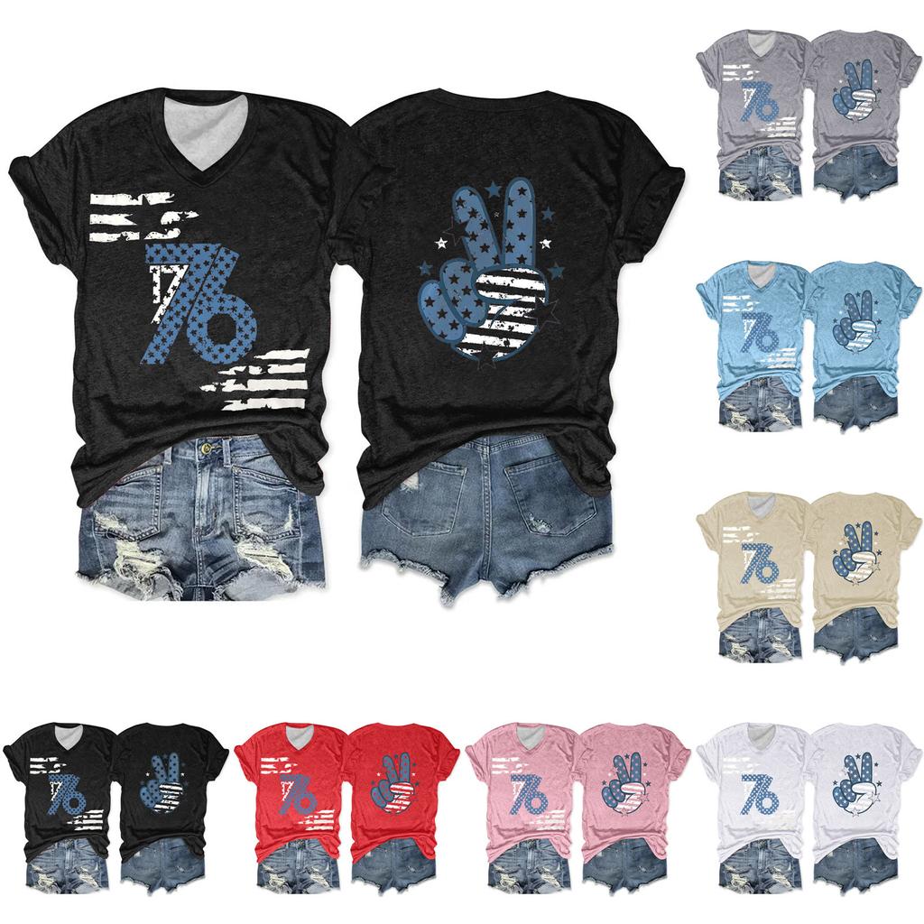 Women'S T-Shirt Casual Loose Printed V-Neck Pullover Short Sleeved Top — buy online with free worldwide shipping!
