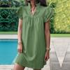 Women's Fashion Casual Solid Color V-Neck Loose Ruffle Sleeve Short Dress