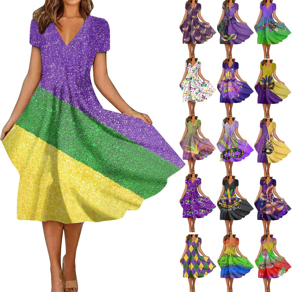 Women's Summer Casual Fashion Print Short Sleeve V-Neck Swing Dress — buy online with free worldwide shipping!