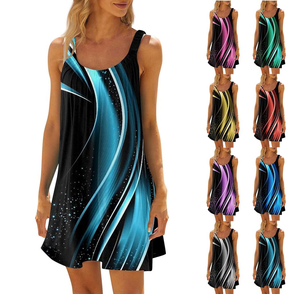 Women's Fashion Summer Beach Casual Print Sleeveless Cute Sling Dress