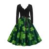 Women's Vintage Classic Dress Long Sleeve St. Patrick's Day Print V-neck Swing Dress